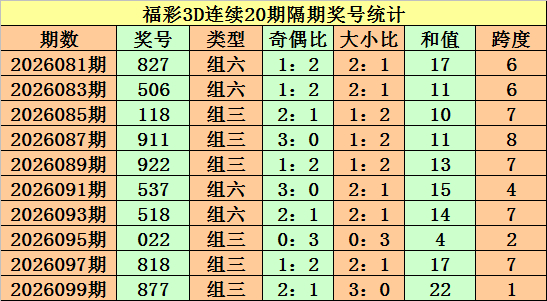 上期回顾:福彩3D第2026100期奖号:414。组三、小小小、偶奇偶。