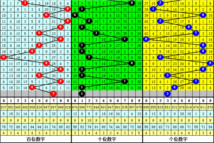 百位:2026096期-2026100期出号:68584,振幅为4点,开出比较集中,本期预计百位走大,参考7。